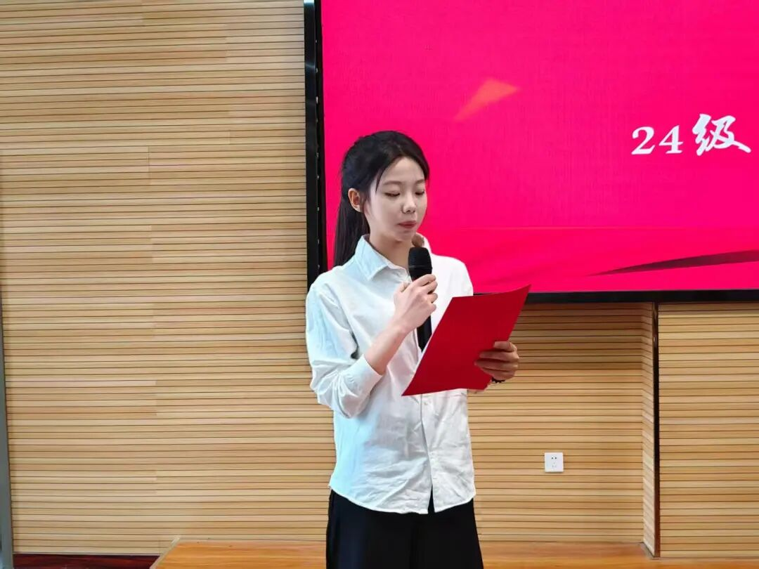 颁发聘书环节之后,王淑瑶作为本届学生干部代表上台发言,表示新一届学生干部团队,会相互协调,相互沟通,未来必将以最大的热情、最严谨的作风、最高的标准,投入到工作中去。