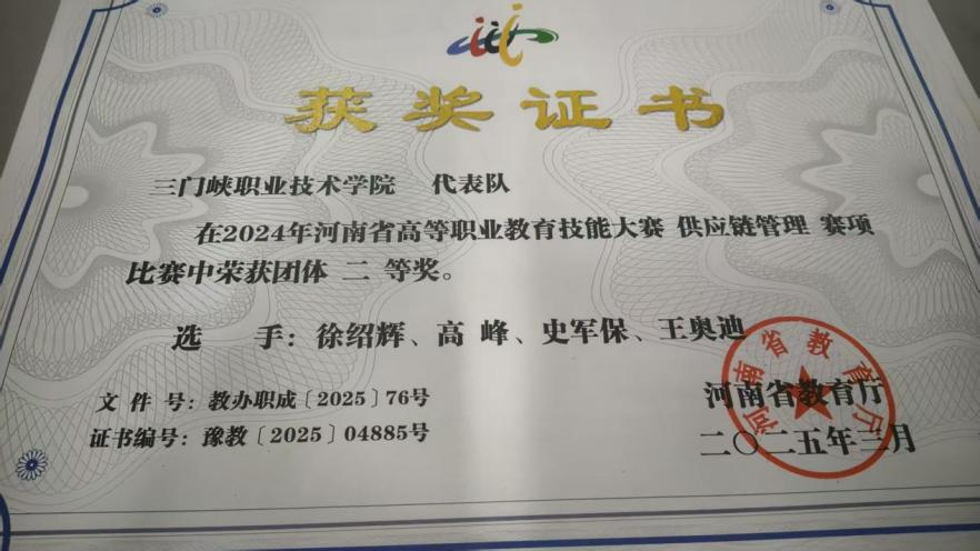 2025届毕业生。在校期间担任班长职务,展现出卓越的能力与责任感,曾荣获国家励志奖学金,并在2023年河南省高等职业教育技能大赛“智慧物流”赛项中带领团队斩获团体二等奖,充分彰显其专业技能与团队协作能力。凭借在校期间的多项荣誉及师生一致好评,2025年荣获省级“优秀毕业生”称号。